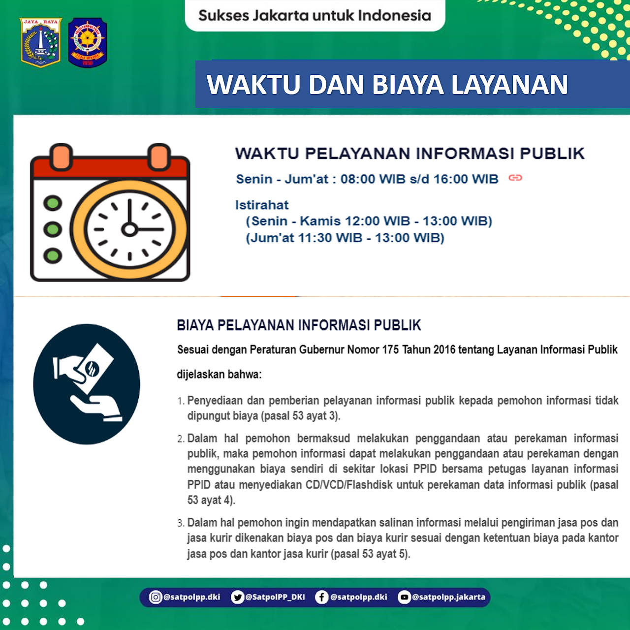 Waktu Pelayanan Informasi PublikSenin - Jum'at : 08:00 WIB s/d 16:00 WIB