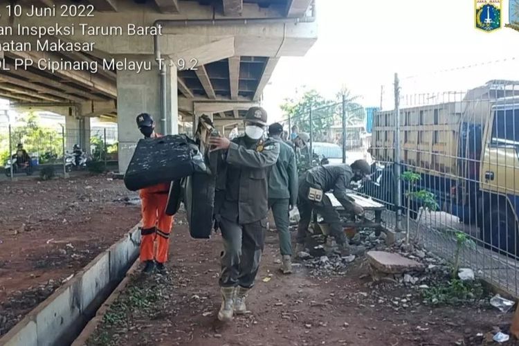 Tempat penyimpanan barang bekas di kolong Tol Becakayu Jalan Raya Inspeksi Kalimalang RW 004, Cipinang Melayu, Makasar, Jakarta Timur, ditertibkan pada Jumat (10/6/2022). Lurah Cipinang Melayu, Aroyantoro mengatakan, penertiban itu dilakukan sebagai... Selengkapnya